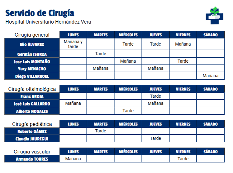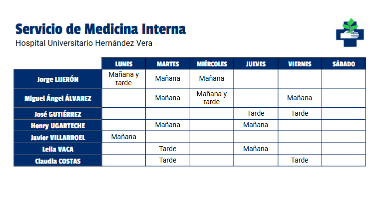 Lunes, miércoles y viernes, de 8 a 10 horas.