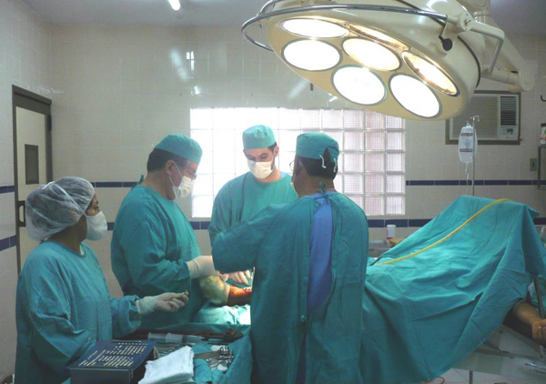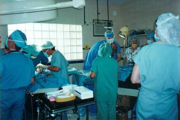 Gracias a esta nueva infraestructura, pudo realizarse la primera intervención quirúrgica del servicio de cirugía (iniciado en 1980) en mayo de 1986. Esta cirugía fue una cesárea, llevada a cabo por la Dra. María Luz Almendros, el Dr. Adhemar Menacho y el anestesiólogo Dr. Carlos Crespo. Tras esta intervención, siguieron rápidamente muchas otras. Entre ellas, destaca la primera cirugía oftalmológica del hospital, realizada en 1987 por el Dr. Bernd Ellerhorst durante uno de sus múltiples viajes a Bolivia.
